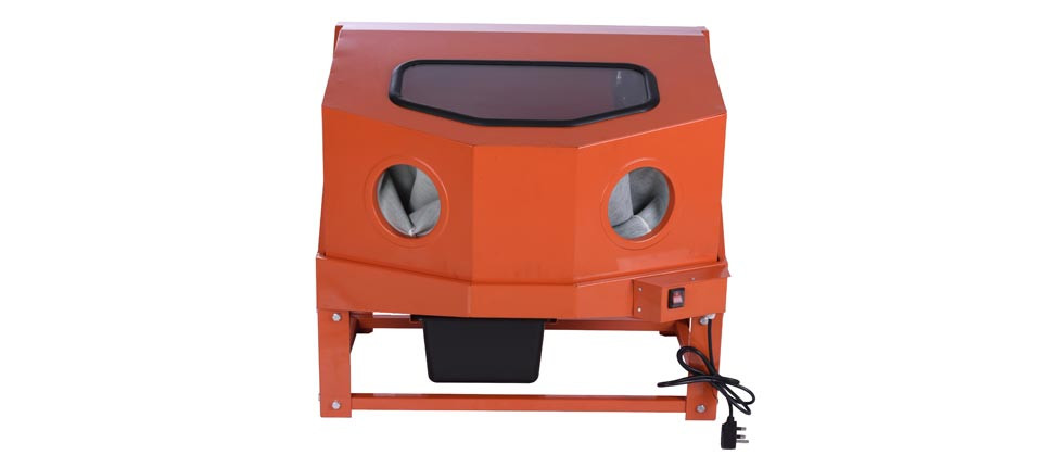 Asztali pneumatikus alkatrészmosó, zárt kabinos.