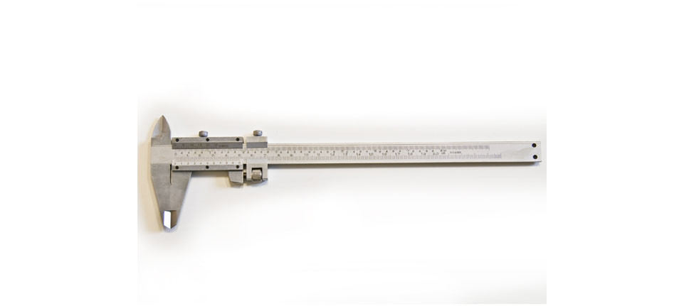 Nóniuszos kétcsőrű tolómérő, colos és metrikus skálával.
