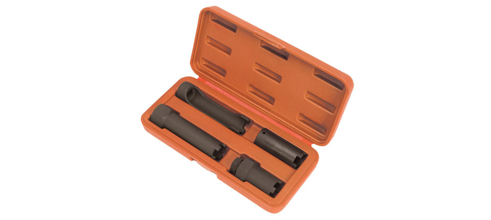 Speciális, fogazott dugókulcs készlet a dízel tehergépjárművek és buszok injektorának beszereléséhez/eltávolításához.