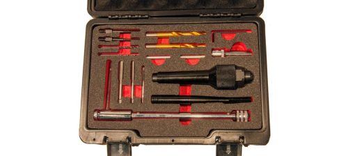 Csigafúró és menetfúró készlet betört M8-as és M10-es izzító gyertyákhoz.