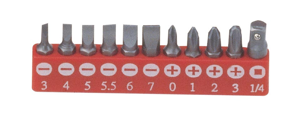 Bit készlet, lapos és csillagfejű 1/4", 11 darabos
