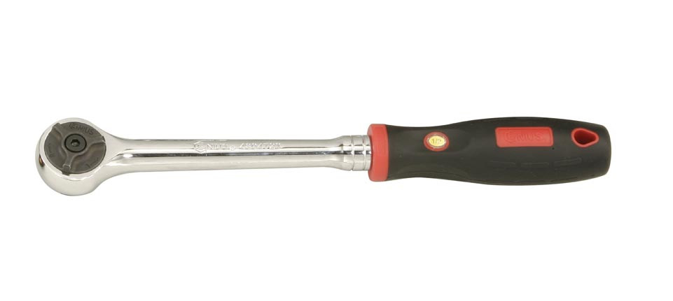 Irányváltós racsnis csavarbehajtó crowahoz, ergonómikus csúszásmentes, gumírozott markolattal.