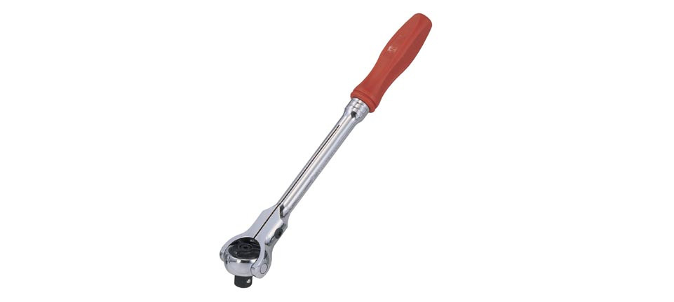 Racsnis csavarbehajtó crowahoz, dönthető (270°) fejjel, króm (fém) markolattal.