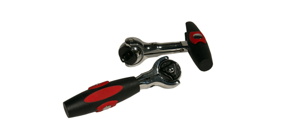Műanyag, csúszásmentes markolata 90°-kal elfordítható, így egyenes és T-alakú hajtószárrá is átalakítható.