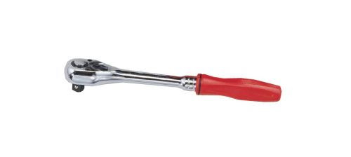 Gyors kioldógombos, biztonsági reteszelésű (quick-release) racsnis hajtókar műanyag markolattal.