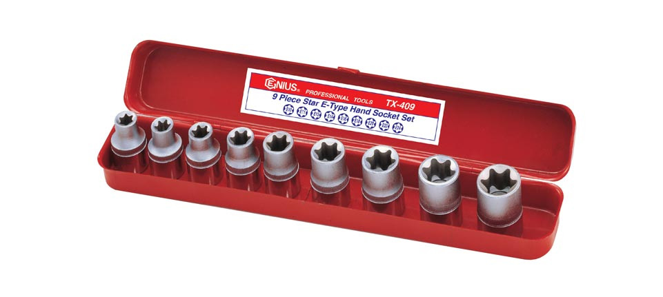 9 darabos crowafej készlet, E-torx.