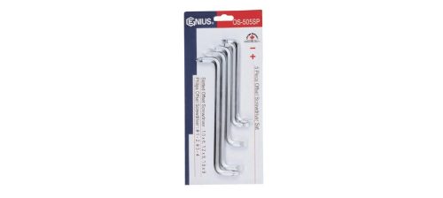 5db kétvégű Z alakú, csavarhúzó készlet 6-lapos szárral. A laposfejű csavarhúzóknál egy száron két egyforma méretű, de 90°-ban elfordított fej található.