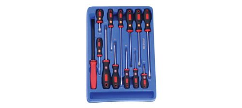 12db csavarhúzó csúszásmentes gumírozott borítású, ergonómikus markolattal, és 1db pajszer.