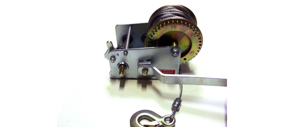 Kézi csörlő acél drótkötéllel.