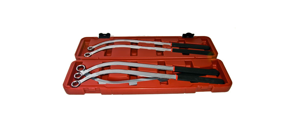 5 darab hosszú, enyhe C alakban hajlított kulcskészlet az ékszíjak cseréjéhez, szereléséhez, állításához. Vékony, hajlított kivitelének köszönhetően a nehezen hozzáférhető, szűk helyeken is jól használható.