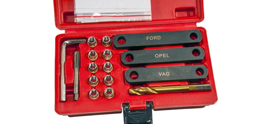A lépcsőzetes fúró segítségével tágítsa ki a menetet, hogy aztán könnyedén behelyezhesse az új betéteket.