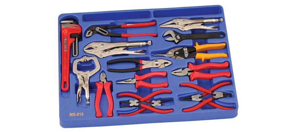 Fogó, csőkulcs, lemezvágó olló készlet, 15 darabos