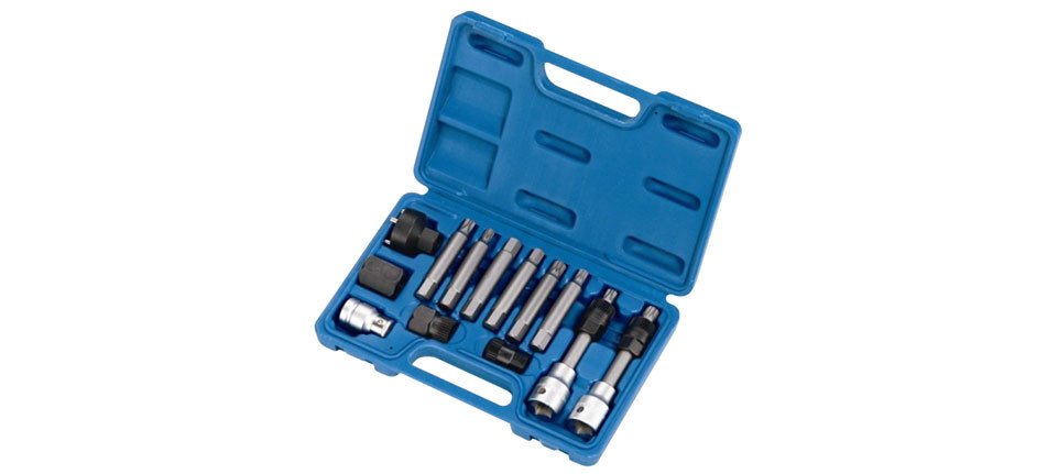 A készletben található imbusz, torx és XZN (spline) bitfej generátor szereléséhez 1/2" crowa befogással.