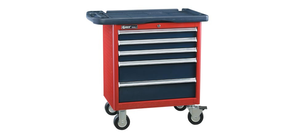 Gurulós szerszámos szekrény felső tálcával, 5 fiókos