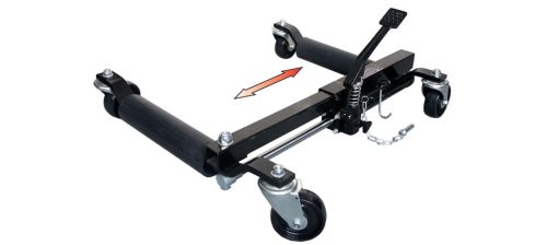 Használata: toljuk a kerék alá az emelőszerkezetet. A pedál nyomására a két kar elkezd összezárulni, ezáltal a kerék felemelkedik a földtől, és elmozdíthatóvá válik a gépjármű. Ha mindegyik kerék alá felhelyeztük a gépkocsi mozgatót, akkor könnyedén bármilyen irányba eltolhatjuk a gépjárművet.