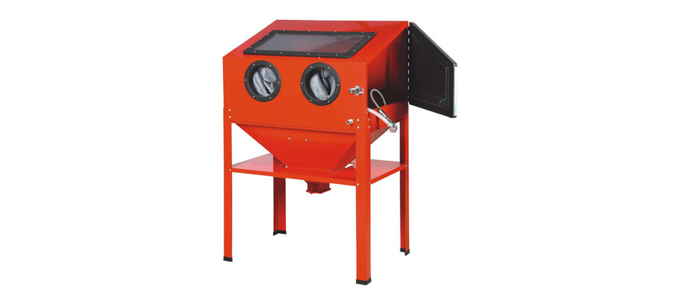Eltávolítja a szennyeződéseket, a rozsdát, a festéket, és minden egyéb lerakódás nagyrészét a zárt térben, miközben megvédi a portól a padlót és a külső környezetet.  A lefolyó homok az alsó rácson át bekerül a tölcséres részbe, ahonnan a gép folyamatosan újra felhasználja. A tölcsér alján keresztül cserélhető a homok.