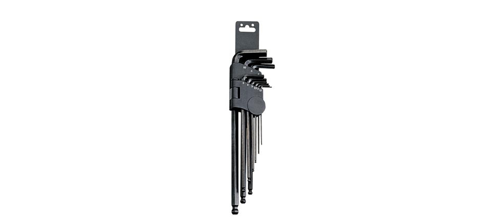 Imbuszkulcs készlet, L-alakú, gömbvégű, colos, hosszú, 9 darabos