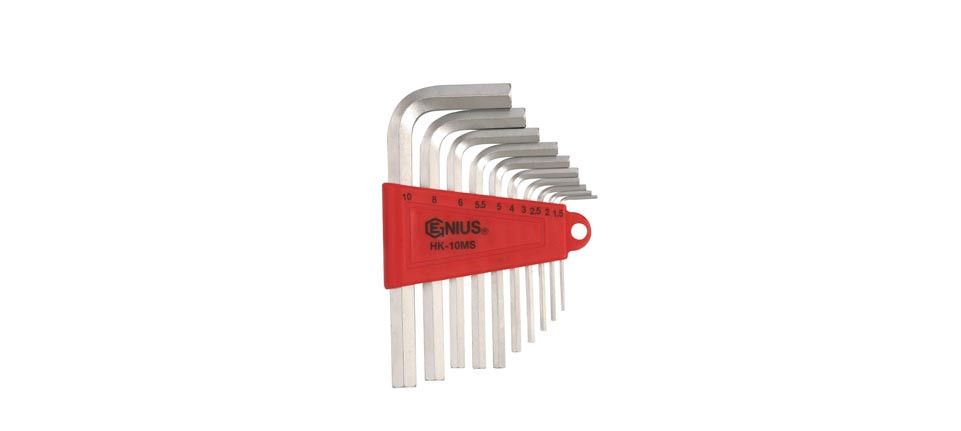 10 darabos imbuszkulcs készlet, L-alakú, metrikus.