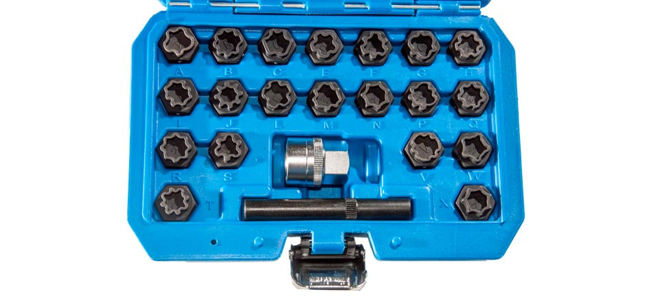 22 db-os kerékanya/kerékőr leszedő készlet AUDI járművekhez.