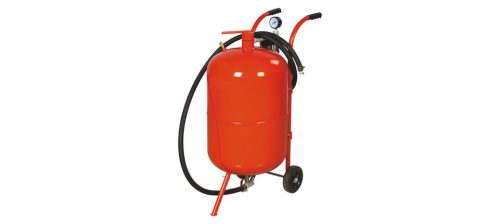 Kültéri, hordozható homokfúvó tartály, 75 literes. Kerámia fúvókával, tömlővel, tölcsérrel, levegő-szűrővel/vízleválasztóval ellátott.