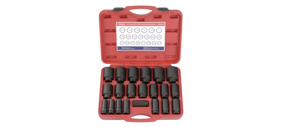 Légkulcsfej készlet, colos, hosszú, 3/4", 21 darabos