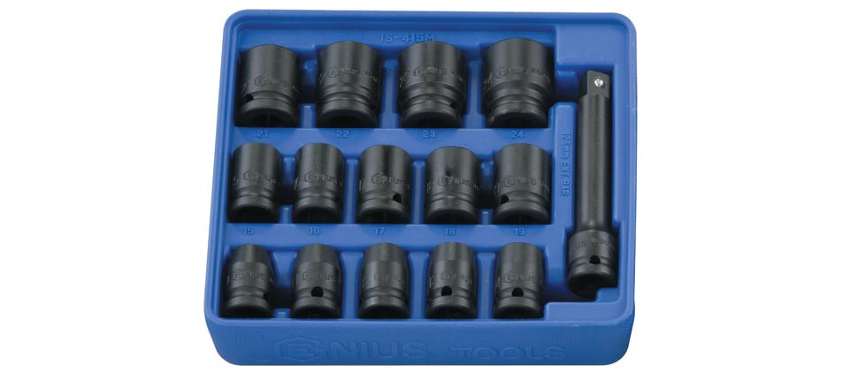 Légkulcsfej készlet, metrikus, 1/2", 15 darabos