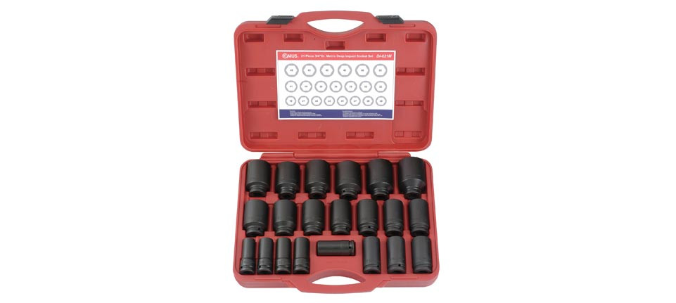 Légkulcsfej készlet, metrikus, hosszú, 3/4", 21 darabos