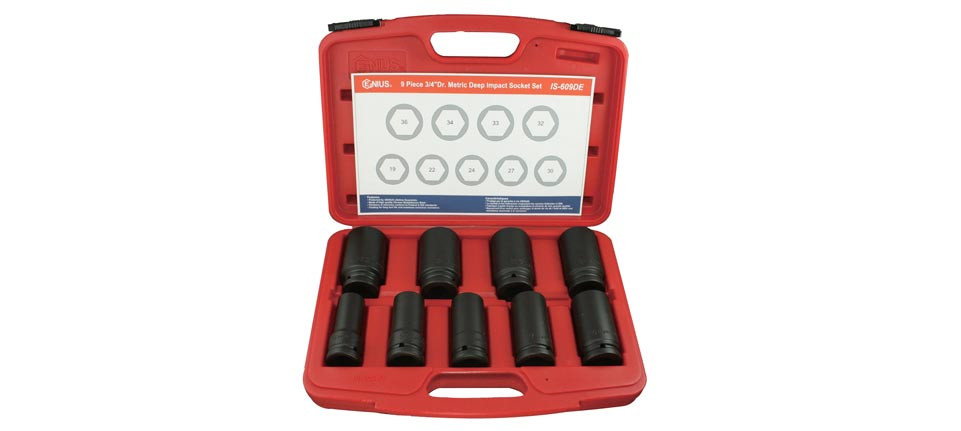Légkulcsfej készlet, metrikus, hosszú, 3/4", 9 darabos