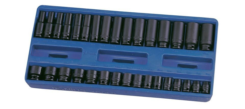 Légkulcsfej készlet, metrikus, hosszú és normál, 3/8", 32 darabos
