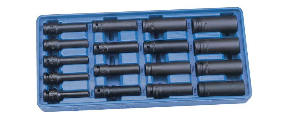 Légkulcsfej készlet, metrikus, hosszú, vékonyított, 1/2", 17 darabos