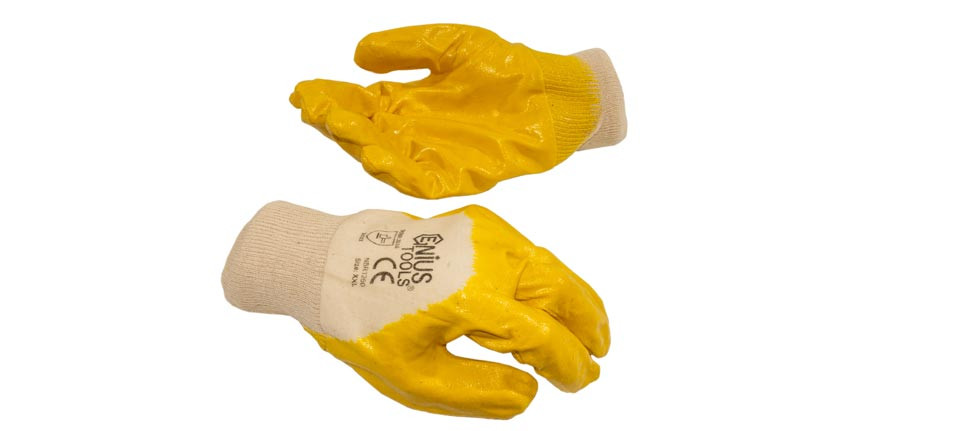 Nitril mártott, pamut kesztyű (EN 3111), sárga, XL-es