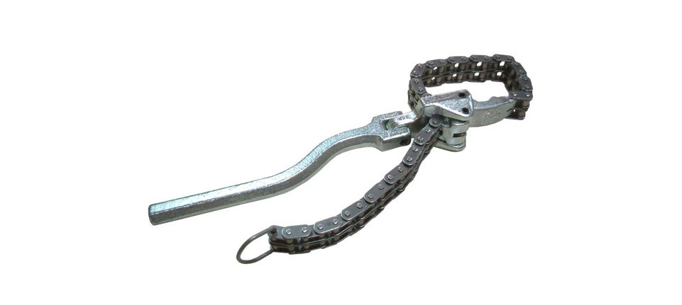 Csuklós duplaláncos olajszűrő leszedő kulcs.