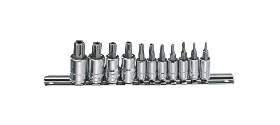 11 darabos ötágú lyukas torx bit készlet crowa foglalatban.