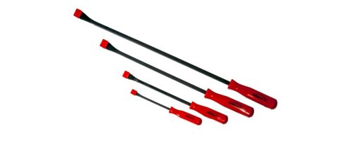4db hajlított végű, különböző hosszúságú pajszer (feszítővas) piros műanyag markolattal.