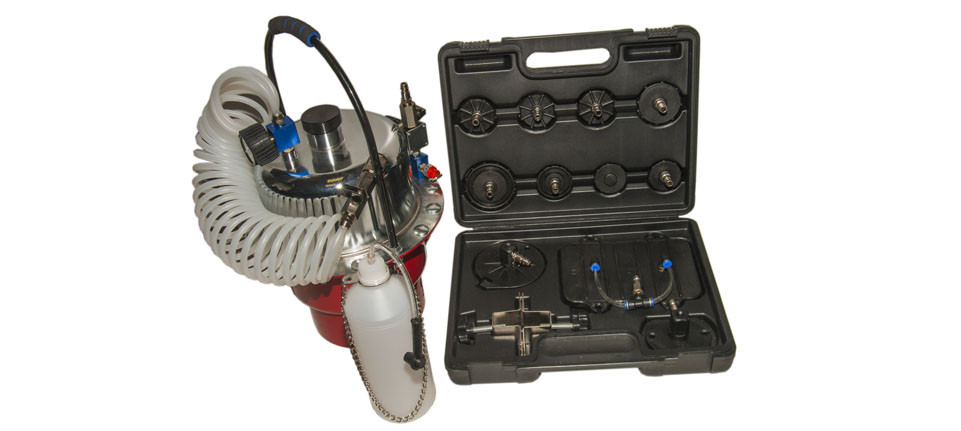 Egyszemélyes fék és kuplung folyadék szivárgásellenőrző és feltöltő professzionális készlet.