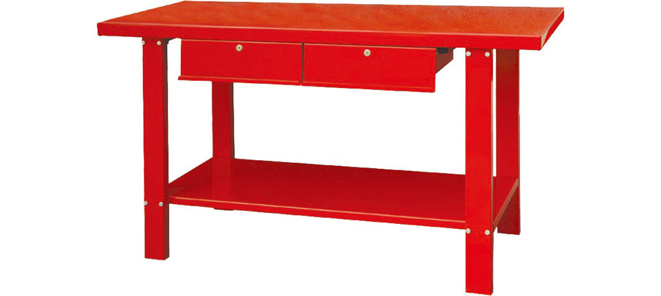 Tartós és stabil acél munkapad, 2 zárható fiókkal.