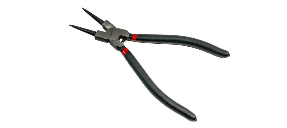Egyenes fogó belső gyűrűhöz. A fogó nyele csúszásmentes gumi borítású.