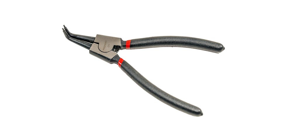 Hajlított (90°) fogó külső gyűrűhöz. A fogó nyele csúszásmentes gumi borítású.