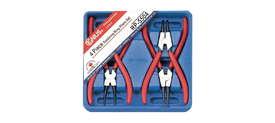 4 darabos seeger (zéger) fogó készlet. A fogó nyele csúszásmentes bordázott gumi borítású.