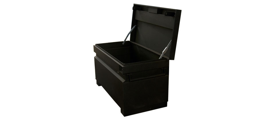 Masszív, erős, nagyméretű fém szerszámos láda, platóra is.