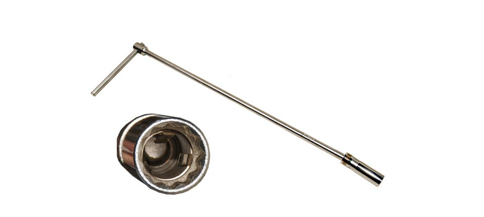 T-alakú crowa hajtókar, hosszú csúsztatható szárral. A szár vége gömbcsuklós (max.30°-os dőlésszög) gyertya crowafejbe végződik.