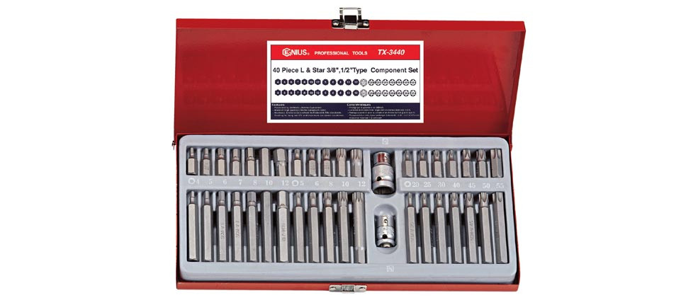 40 darabos T-torx, imbusz, XZN bit készlet + 3/8" és 1/2" crowa foglalat.