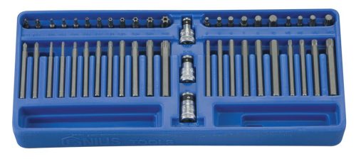 47 darabos T-torx (lyukas), pozidriv, imbusz, XZN bit készlet + 3/8" crowa foglalat.