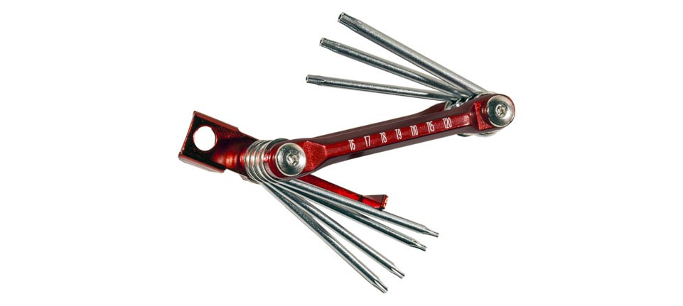 Összecsukható (bicska) lyukas torxkulcs készlet, T-típusú (külső).