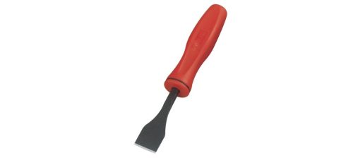 Lapos kaparó, merev karbon acélból készült fejjel, egyenes szárral, műanyag markolattal.