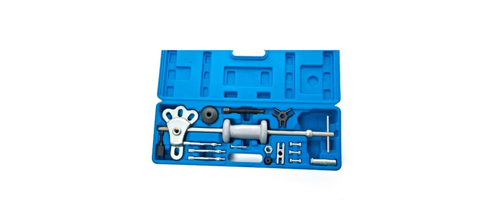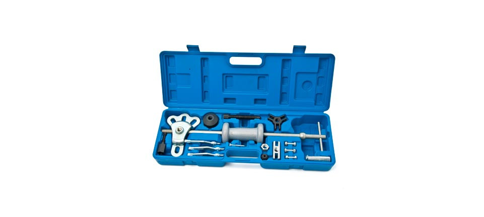 A készlet tartalmaz a csúszókalapács mellett például 2/3 körmös belső/külső csapágylehúzót, 2/3 pontos kerékagylehúzót, húzókampót, és kúpos adaptereket is.