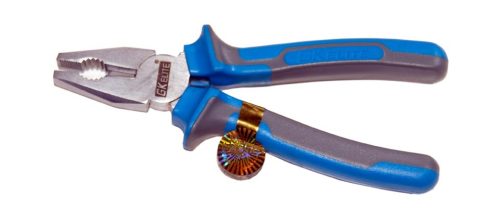 Kombinált fogó, erős strapabíró műanyag markolattal (kék-szürke).