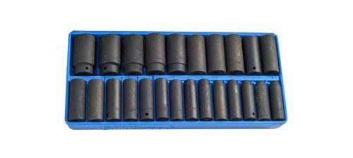 Légkulcsfej készlet, metrikus, hosszú, 1/2", 24 darabos