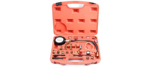 Átfogó adapter és szerelvény készlet az üzemanyag-szivattyú nyomásának ellenőrzéséhez a befecskendező-rendszerű járműveknél.